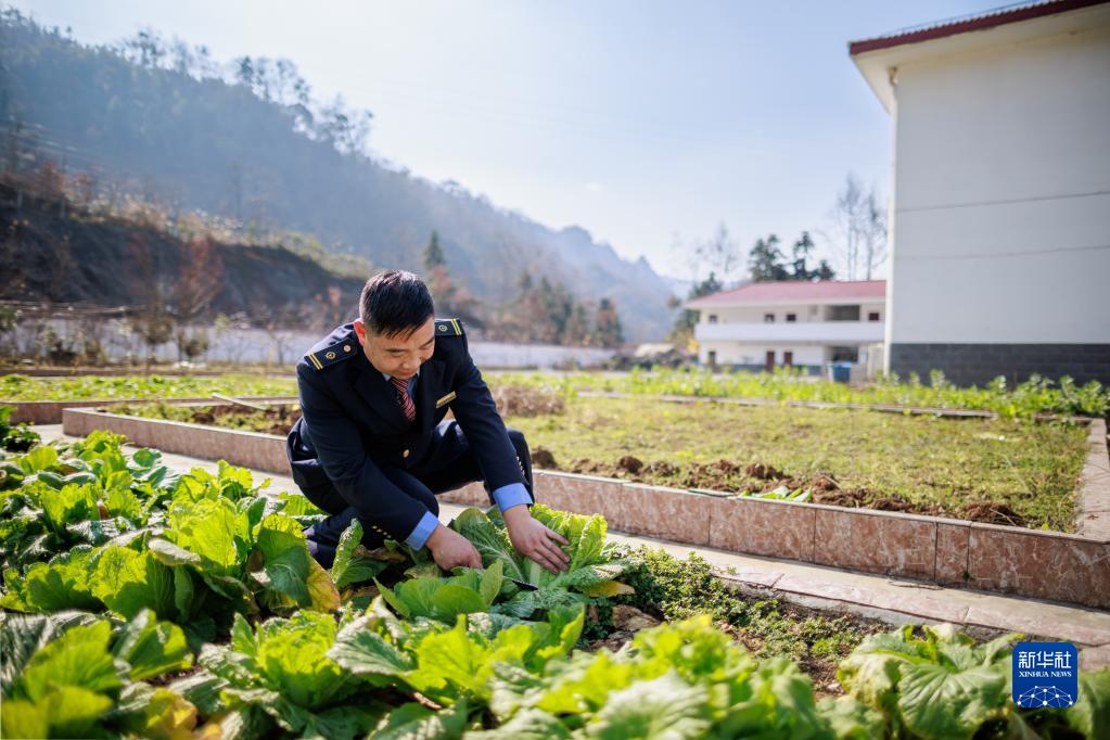 毛忠輝在自己種植的菜園內收菜(1月11日攝)。