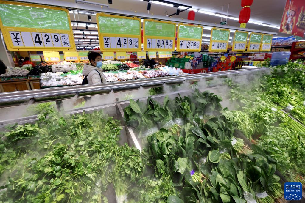 1月12日,消費者在山東省棗莊市一家超市選購蔬菜。