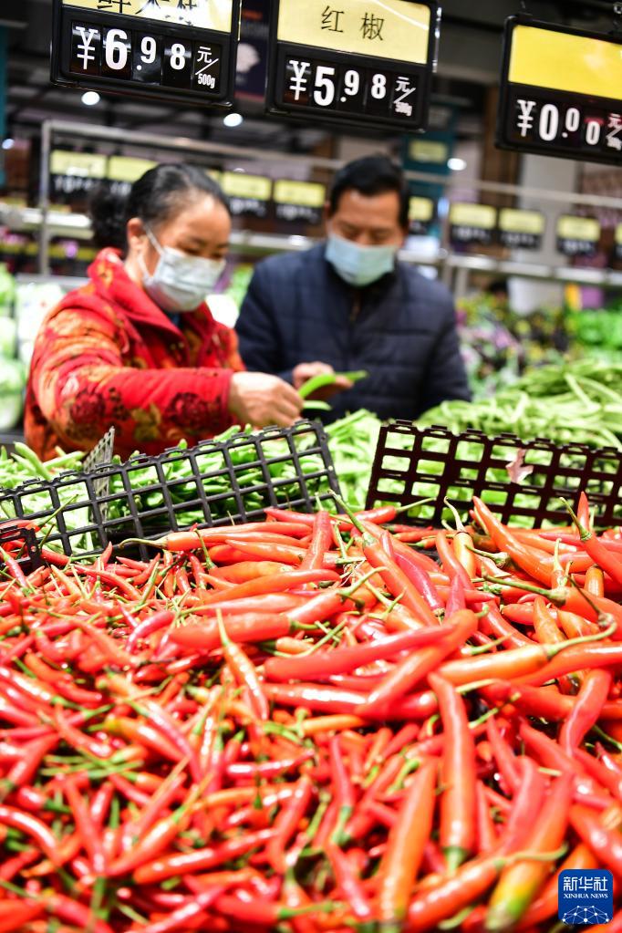 1月12日,消費者在湖南省邵陽(yáng)市城步苗族自治縣一家超市選購蔬菜。