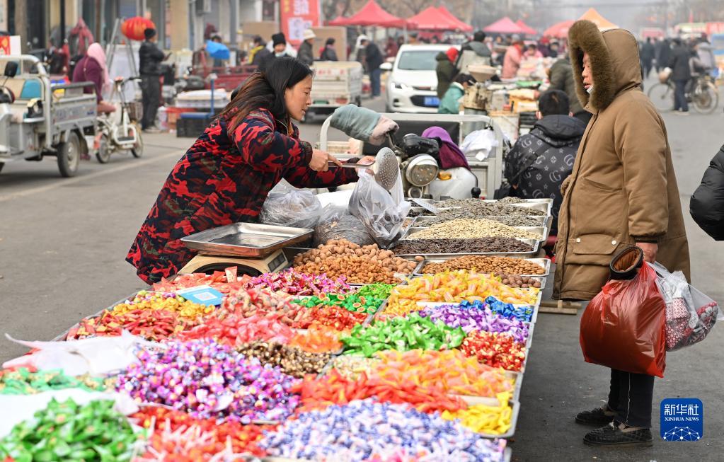 春節臨近,年味漸濃。在山西省運城市鹽湖區金井鄉的年集上,不少周邊地區的村民前來(lái)采辦年貨,迎接新春的到來(lái)。