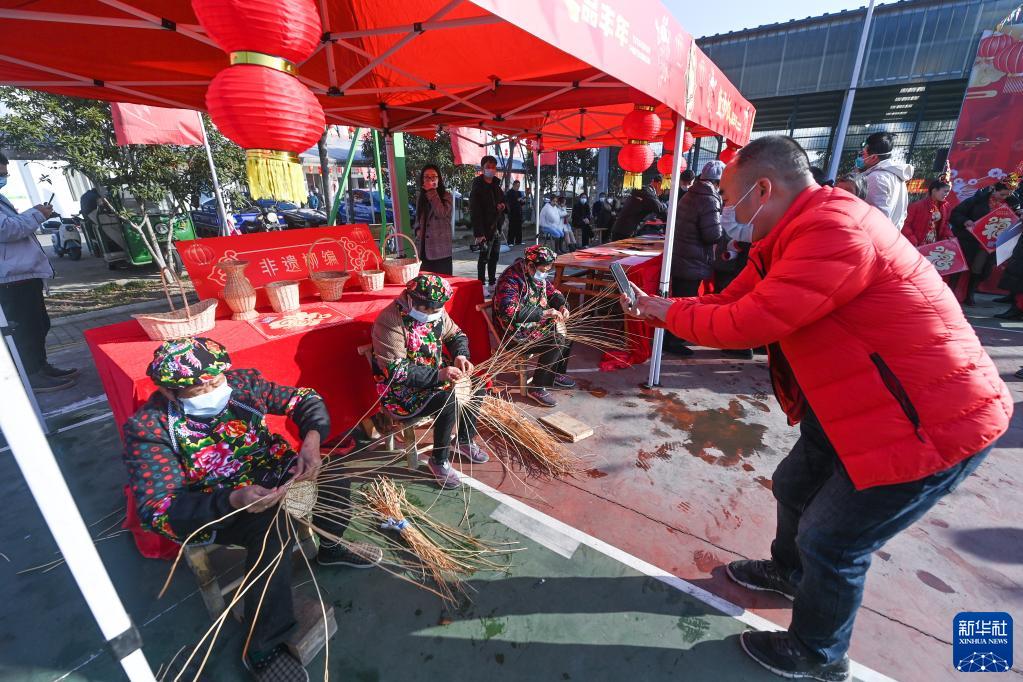 1月12日,村民在活動(dòng)現場(chǎng)展示傳統柳編。