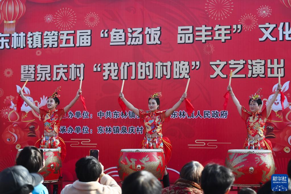 當日,浙江省湖州市吳興區東林鎮的水鄉“魚(yú)湯飯 品豐年”迎春活動(dòng)在泉慶村舉辦,活動(dòng)包括清塘捕魚(yú),魚(yú)湯飯、魚(yú)圓魚(yú)餅、刺毛圓子、手作年糕等年味美食的制作及品嘗,還有歌舞表演、非遺柳編現場(chǎng)展示、書(shū)法愛(ài)好者寫(xiě)春聯(lián)送祝福等。