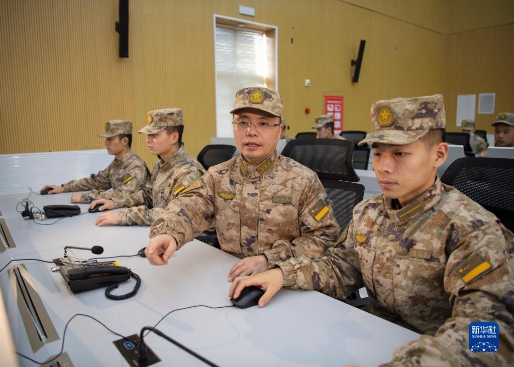 火箭軍某部處長(cháng)丁國林帶領(lǐng)導調骨干一起研究籌劃部隊對抗訓練(資料照片)。