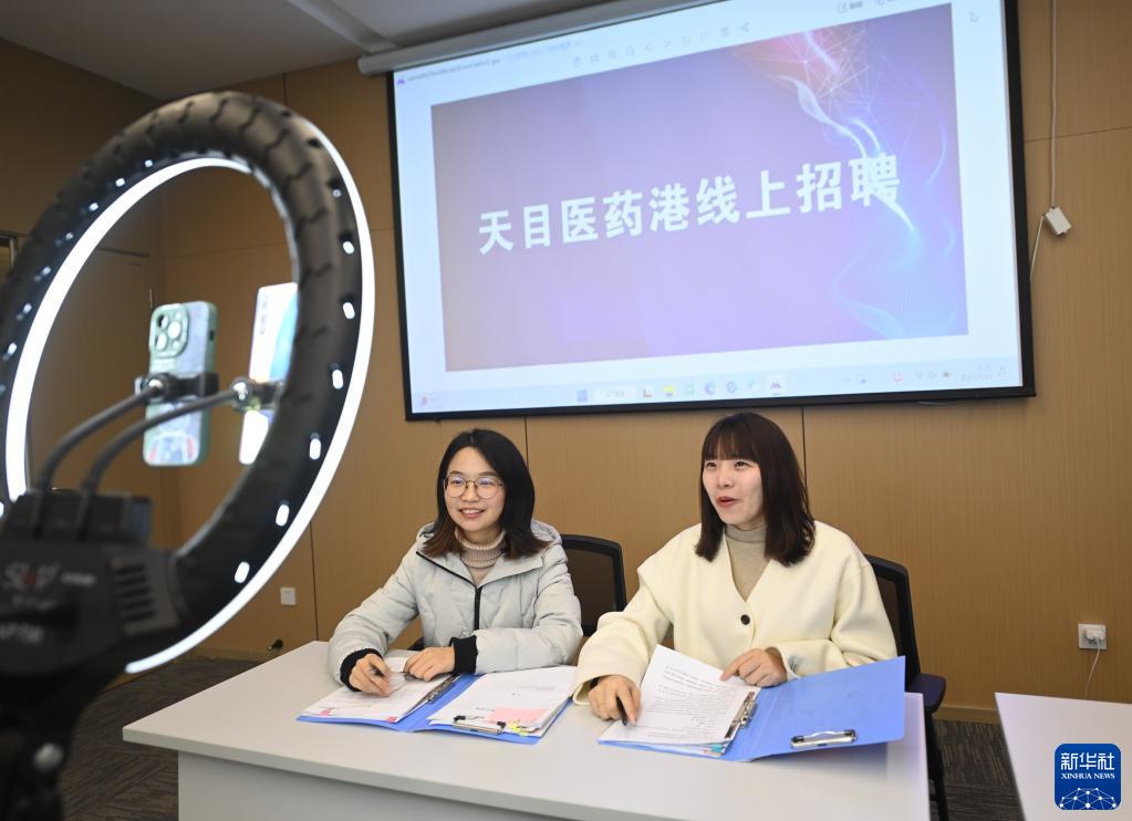 1月13日,在天目醫藥港醫藥產(chǎn)業(yè)孵化園的線(xiàn)上招聘會(huì )直播間,錦南新城管委會(huì )負責人和主持人一起介紹孵化園以及園內企業(yè)的人才需求。