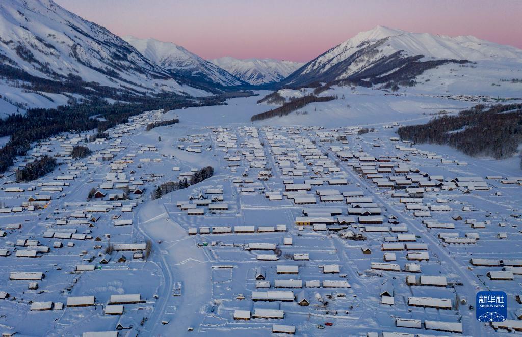1月12日拍攝的新疆阿勒泰地區禾木景區(無(wú)人機照片)。