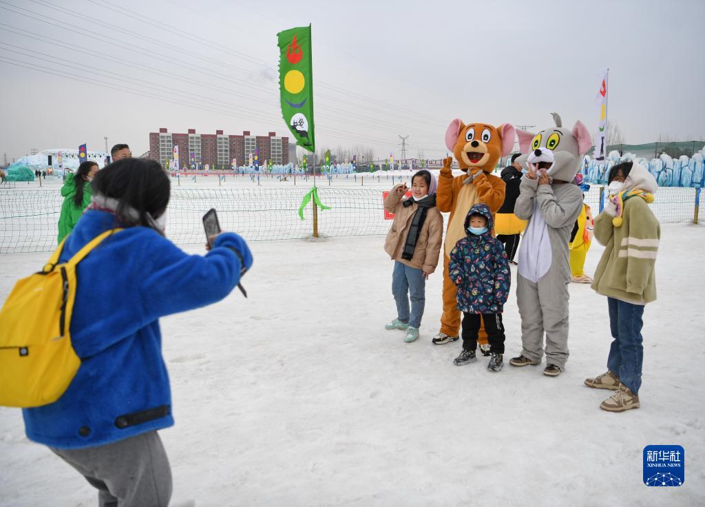 1月13日,游客在冰雪嘉年華上拍照留念。