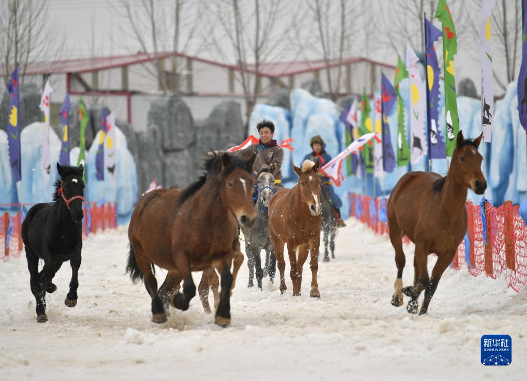1月13日,演員在冰雪嘉年華現場(chǎng)表演馬術(shù)。
