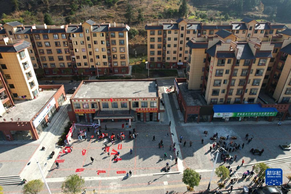 1月13日拍攝的羅甸縣木引鎮康夢(mèng)家園迎春活動(dòng)現場(chǎng)(無(wú)人機照片)。