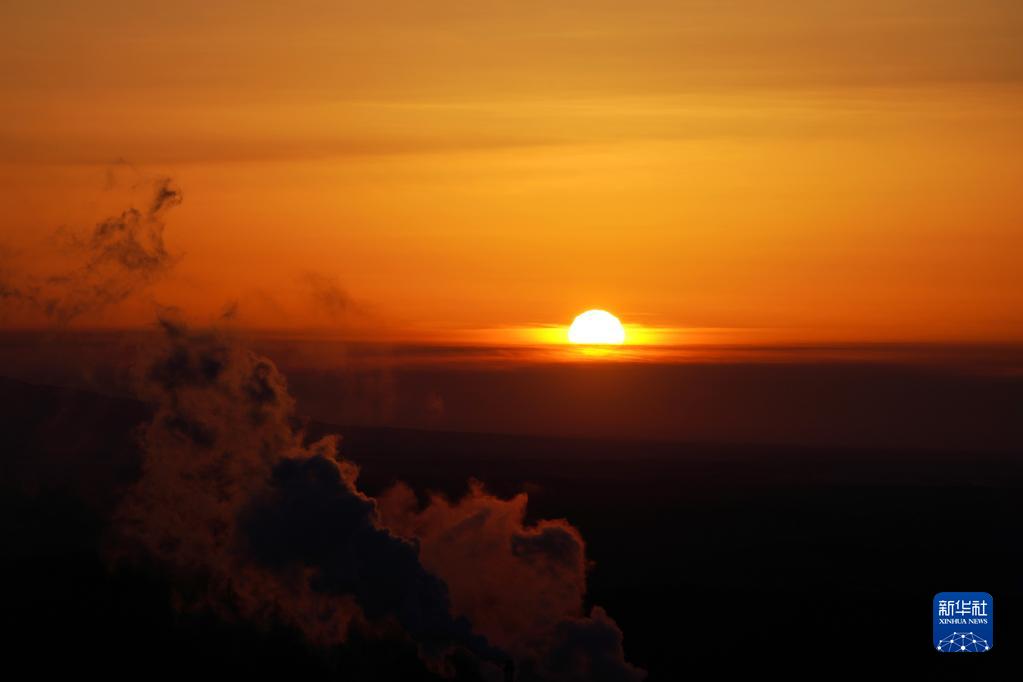 1月14日在黑龍江省撫遠市東極閣上拍攝的日出。
