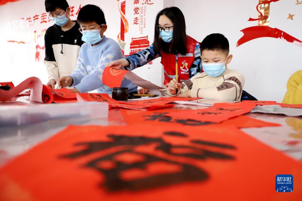 1月13日,山東省青島西海岸新區青少年在書(shū)寫(xiě)春聯(lián)。