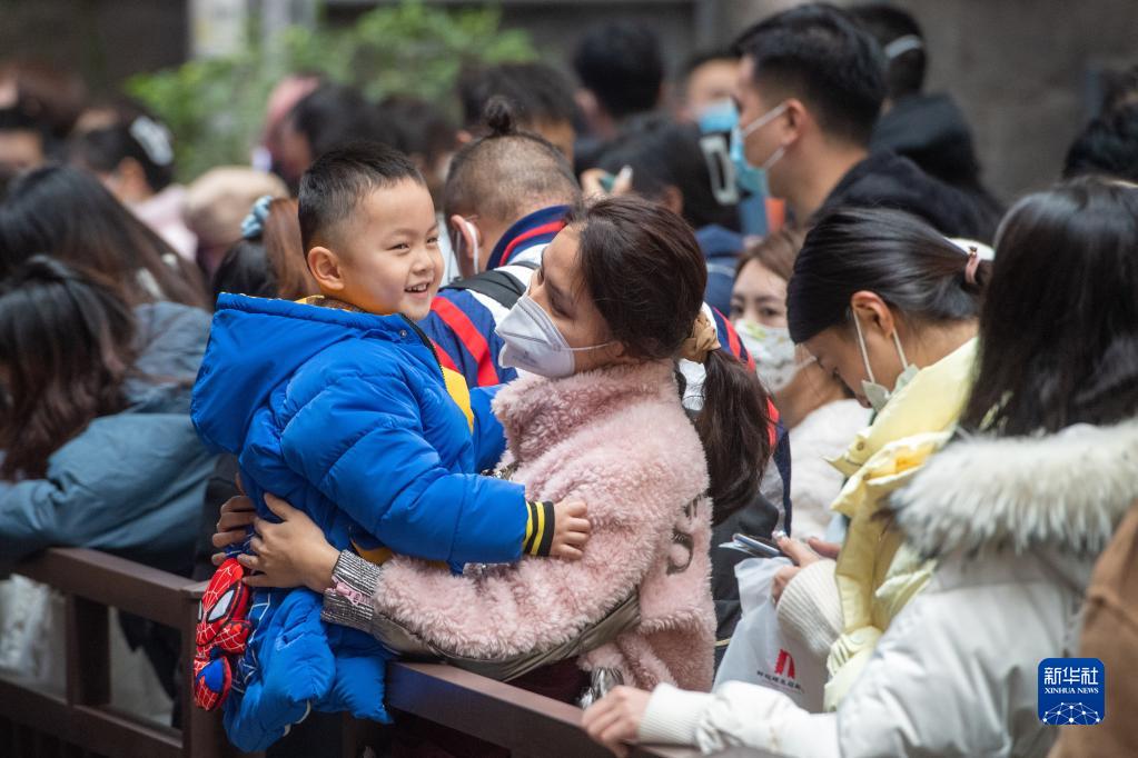 1月13日,在位于重慶市渝中區的長(cháng)江索道站點(diǎn),游客在排隊等待搭乘長(cháng)江索道。