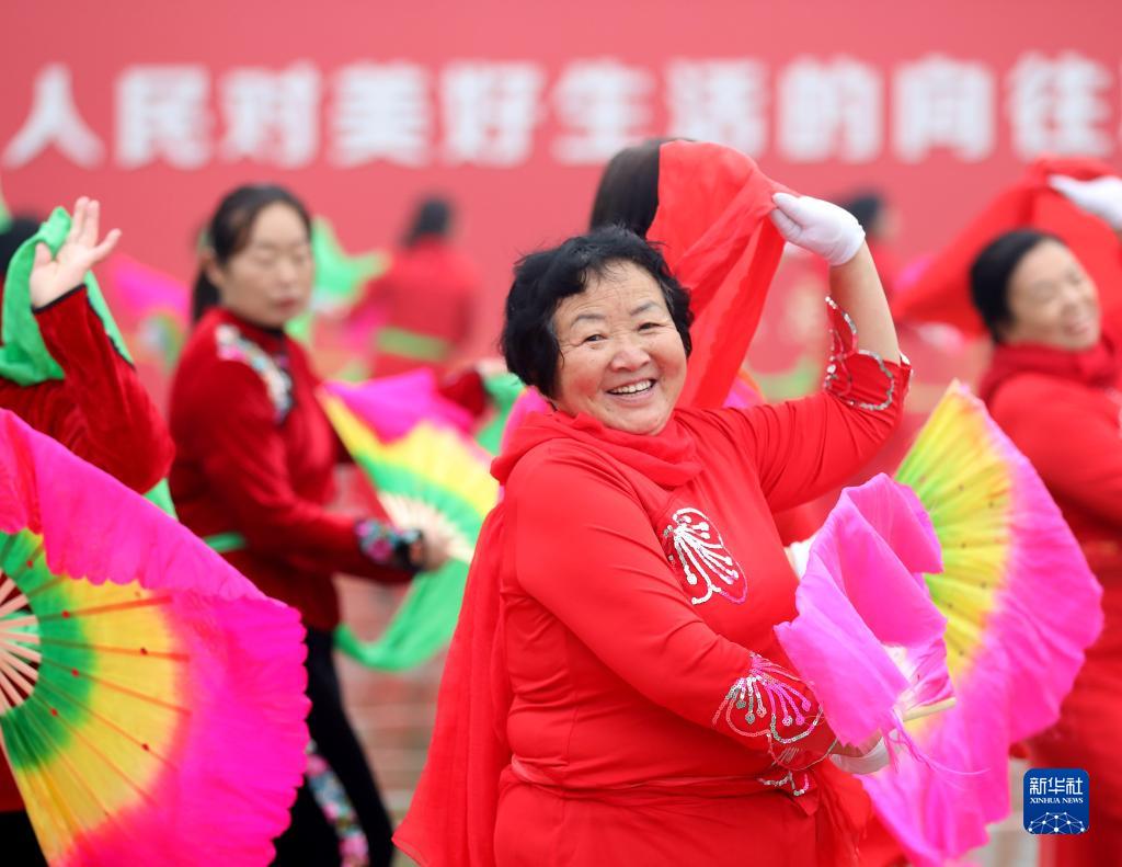 1月13日,河北省滄州市東光縣油坊口村的村民在扭秧歌。