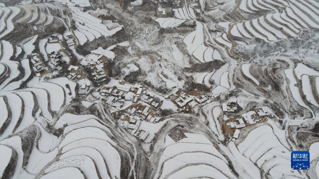 1月14日在甘肅省定西市安定區青嵐山鄉拍攝的梯田雪景。