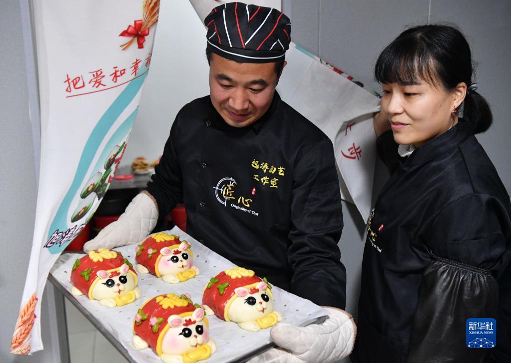 為迎接兔年,河南省洛陽(yáng)市的一家面藝工作室以兔為題,創(chuàng )作出外形乖萌可愛(ài)的兔型花饃,為消費者提供更多“年味”之選。