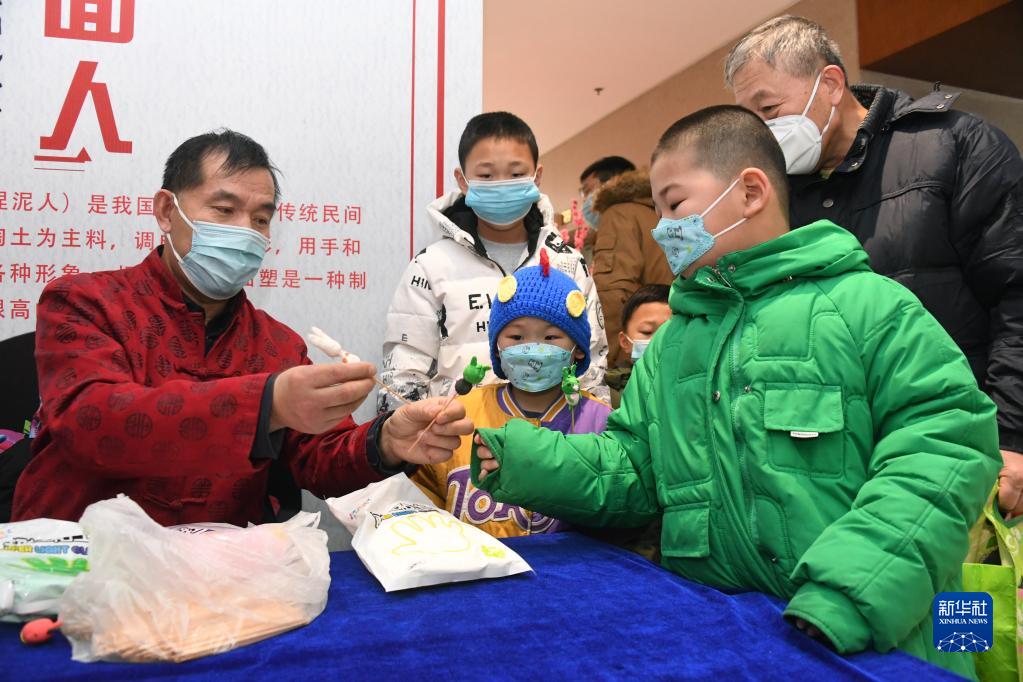 1月14日,在海淀北部文化中心,小朋友在觀(guān)看“捏面人”。