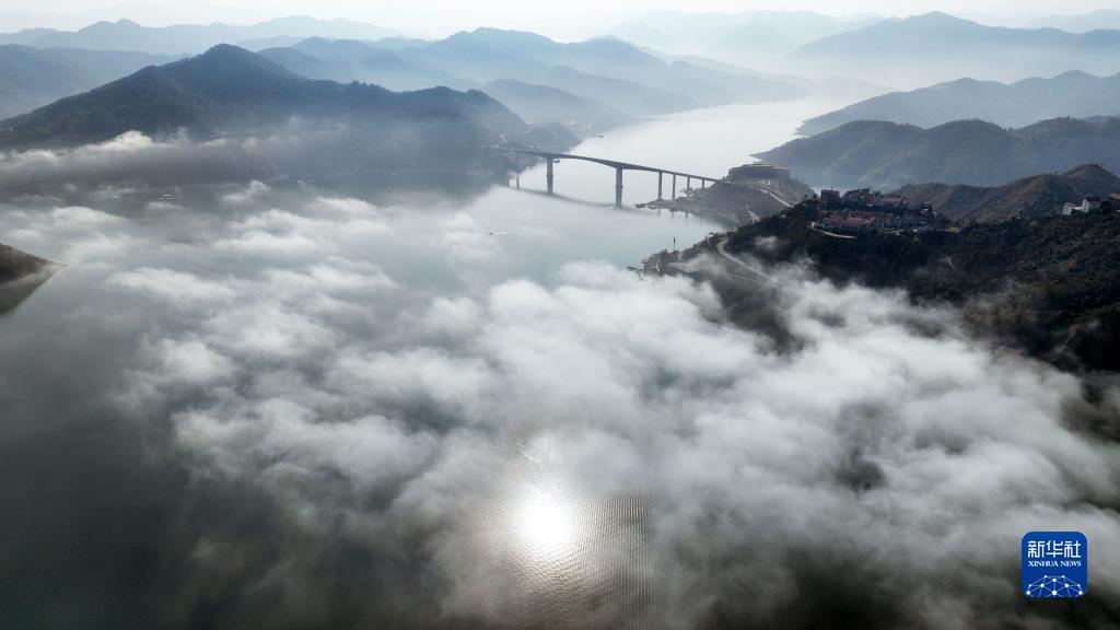 冬日,貴州省羅甸縣紅水河畔山巒起伏,云纏霧繞,景色如畫(huà)。