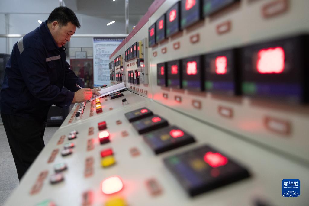 1月12日,工作人員在漠河華美供熱有限公司控制室內進(jìn)行作業(yè)。