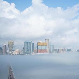當日,澳門(mén)出現大霧天氣,樓宇在霧氣中若隱若現。