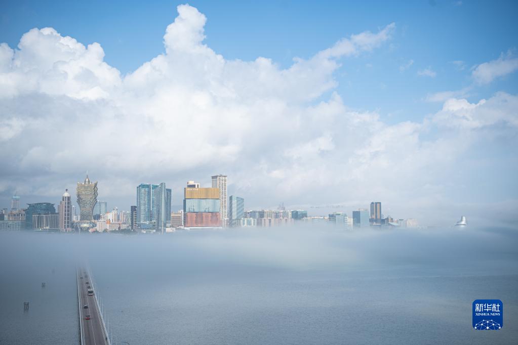 當日,澳門(mén)出現大霧天氣,樓宇在霧氣中若隱若現。