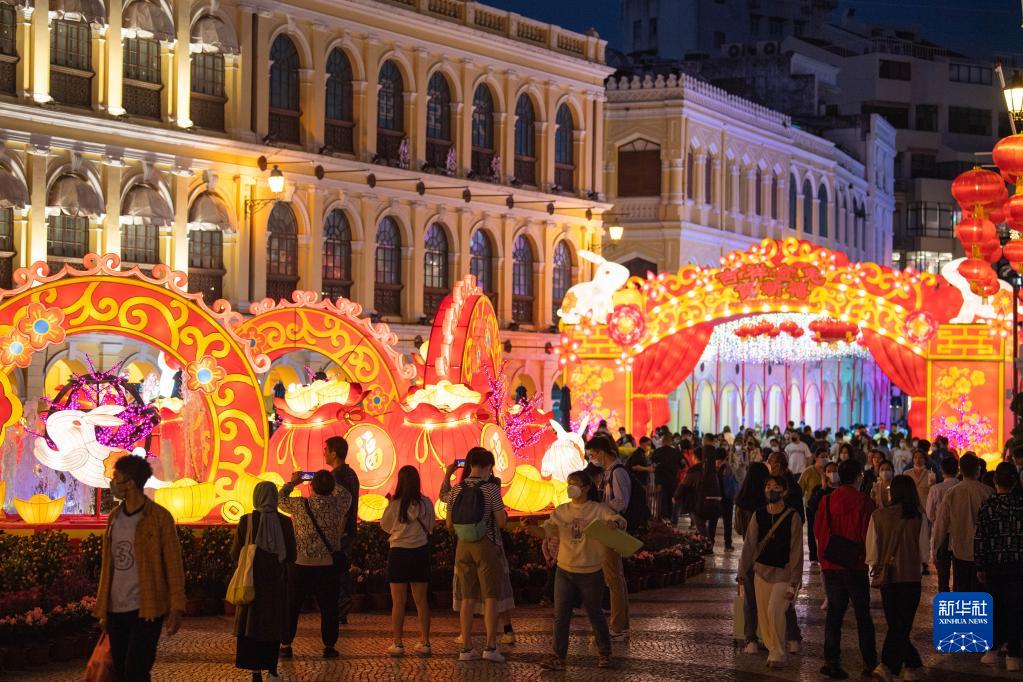 春節即將來(lái)臨,澳門(mén)市政署以“吉祥金兔賀新禧”為主題于澳門(mén)各區布置賀年燈飾,營(yíng)造濃厚的節日氛圍。