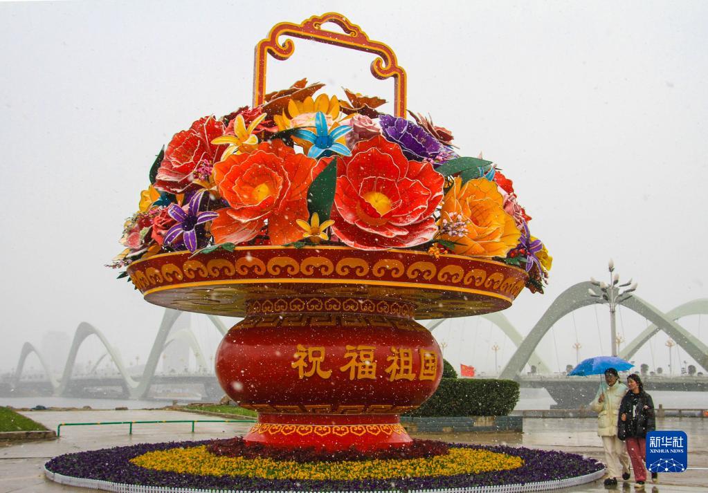 1月14日,在河南省南陽(yáng)市,市民冒雪出行。