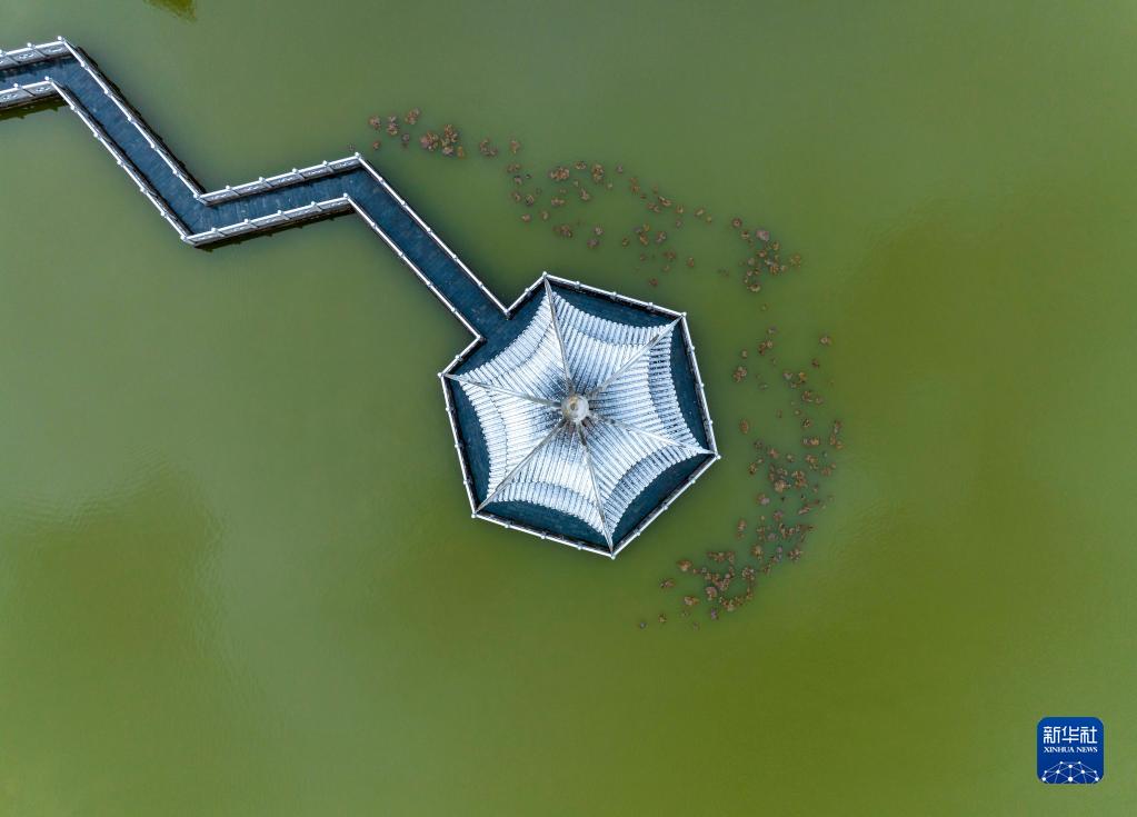 江蘇省淮安市清晏園雪景(1月14日攝,無(wú)人機照片)。