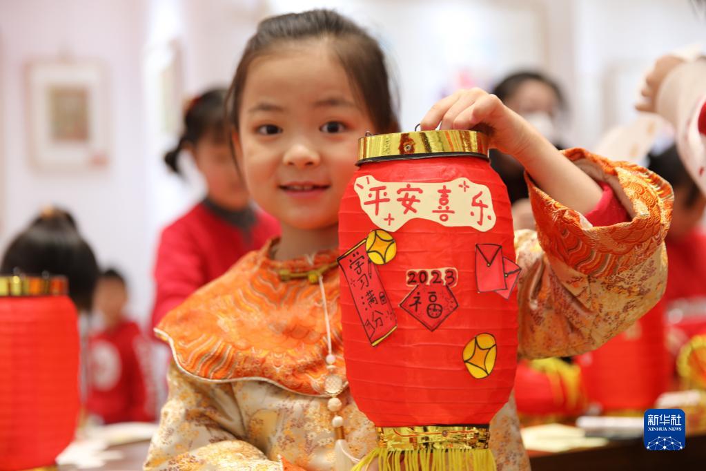 1月15日,在河北省承德市雙橋區,小朋友在“做花燈、制年畫(huà)、迎新年”活動(dòng)上展示自己制作的花燈。