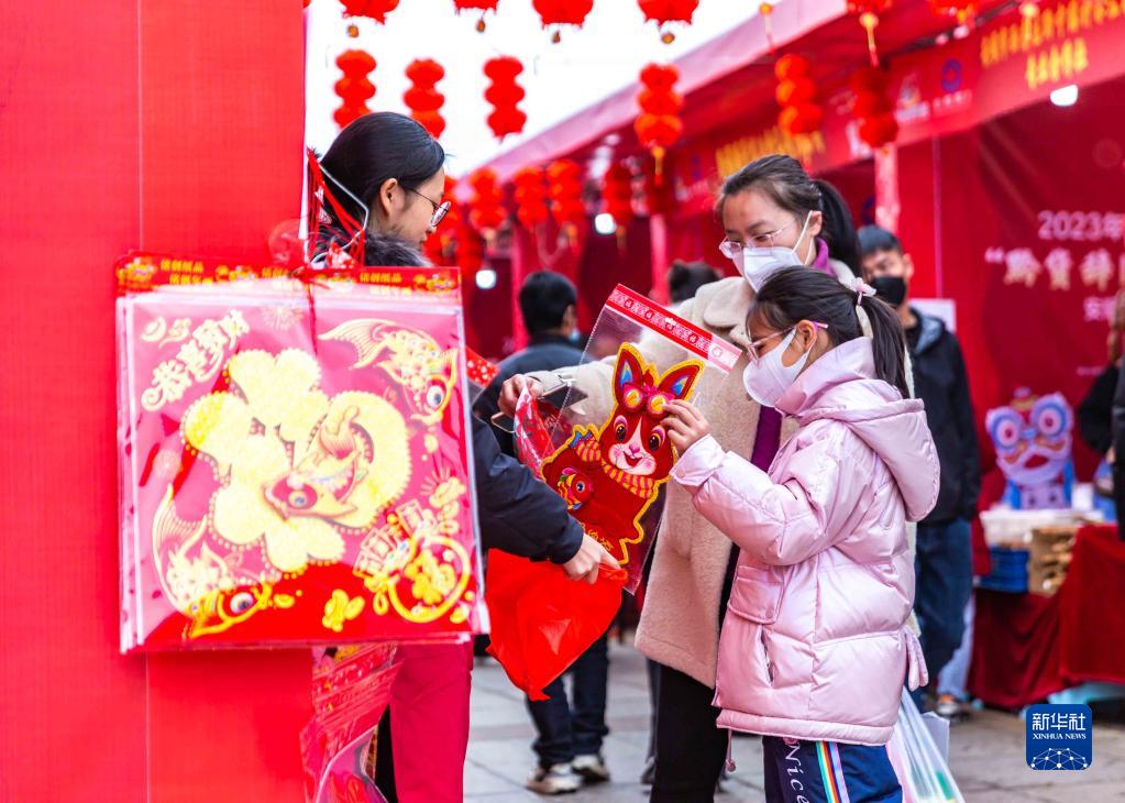 1月14日,人們在貴州省安順市西秀區一年貨市場(chǎng)上選購新春飾品。