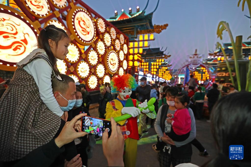市民在“南寧之夜”文旅步行街與演員互動(dòng)(1月14日攝)。