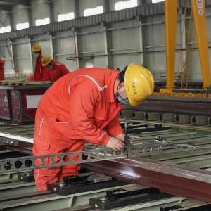 1月14日,中鐵山橋集團有限公司的工人在道岔生產(chǎn)車(chē)間工作。