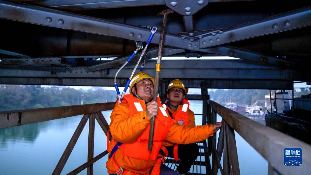 陳榮興和陳龍父子是中國鐵路南寧局集團有限公司玉林工務(wù)段橋隧檢查工區的職工,父親陳榮興是工長(cháng),兒子陳龍是班長(cháng)。春運期間,為保障列車(chē)在鐵路郁江橋上安全通行,父子倆并肩作戰,承擔橋梁的設備檢修及維護工作,共同守護旅客的安全回家路。