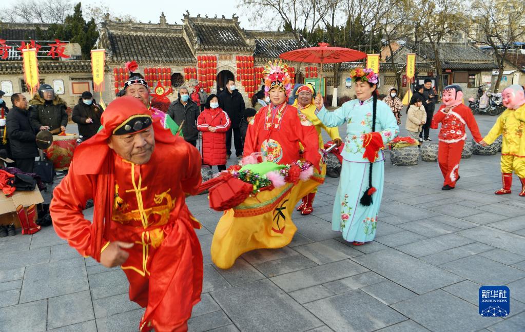 春節臨近,安徽省亳州市舉辦民俗表演迎新春活動(dòng),民間藝人表演舞龍、斗驢、抬花轎、扭秧歌等民俗節目,迎接新春佳節的到來(lái)。