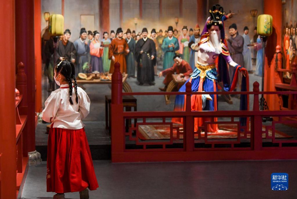 在烏魯木齊市博物館內,一名小朋友在參觀(guān)展品(1月14日攝)。