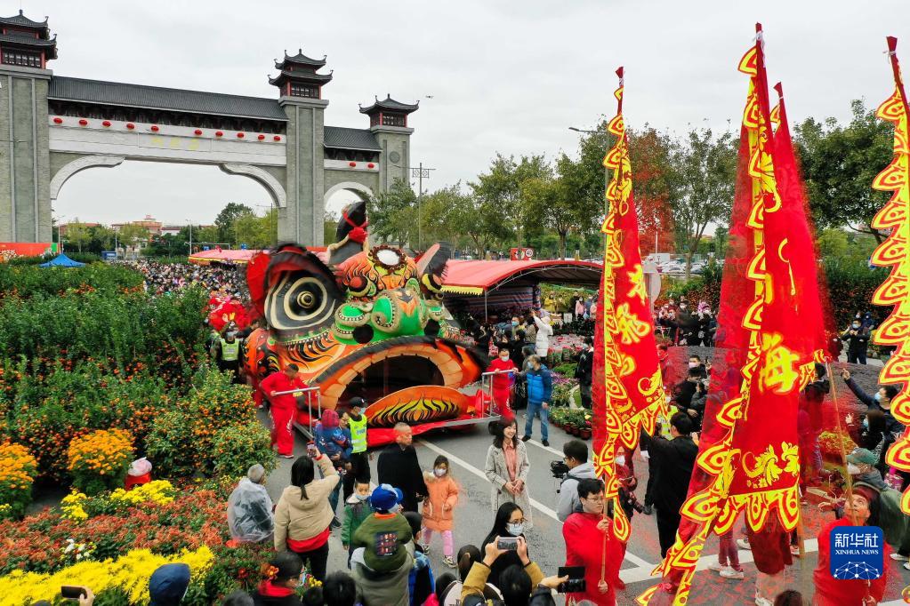 1月15日,高4.68米、寬4.5米的“獅王”獅頭在巡游(無(wú)人機照片)。