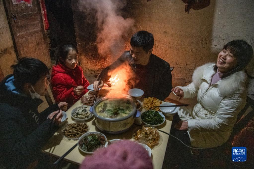 1月15日,在湖北十堰的家中,易生軍與家人一起吃晚飯。