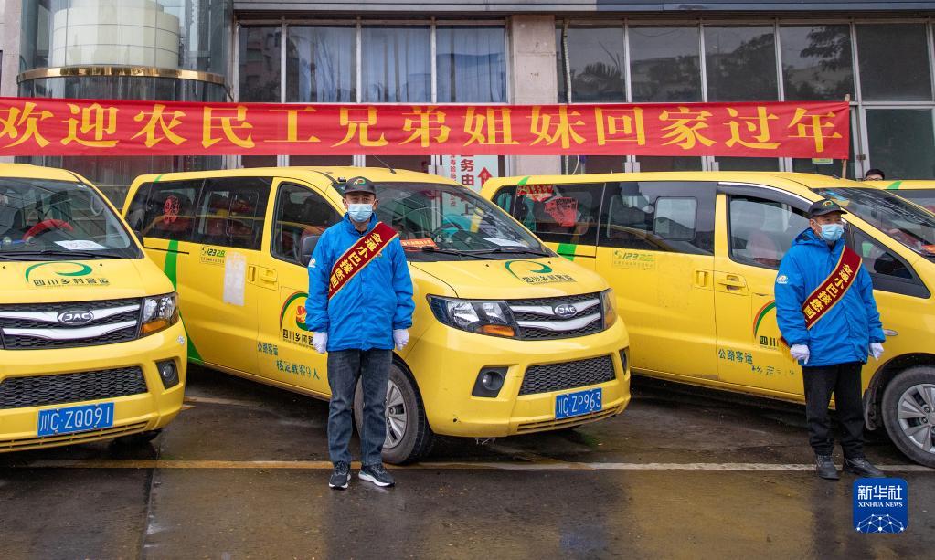 1月15日,在富順縣客運中心,“金通工程”小黃車(chē)等候返鄉農民工轉乘。