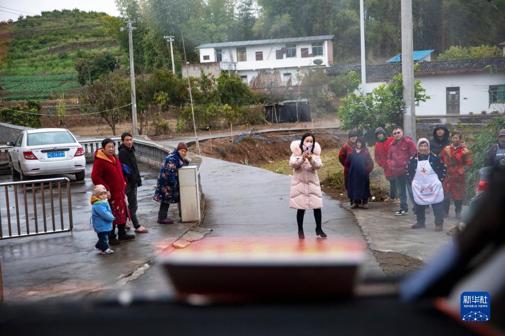 1月15日,富順縣竹米村村民古澤根乘坐“金通工程”小黃車(chē)到家,他的親友早已等候在家門(mén)口。