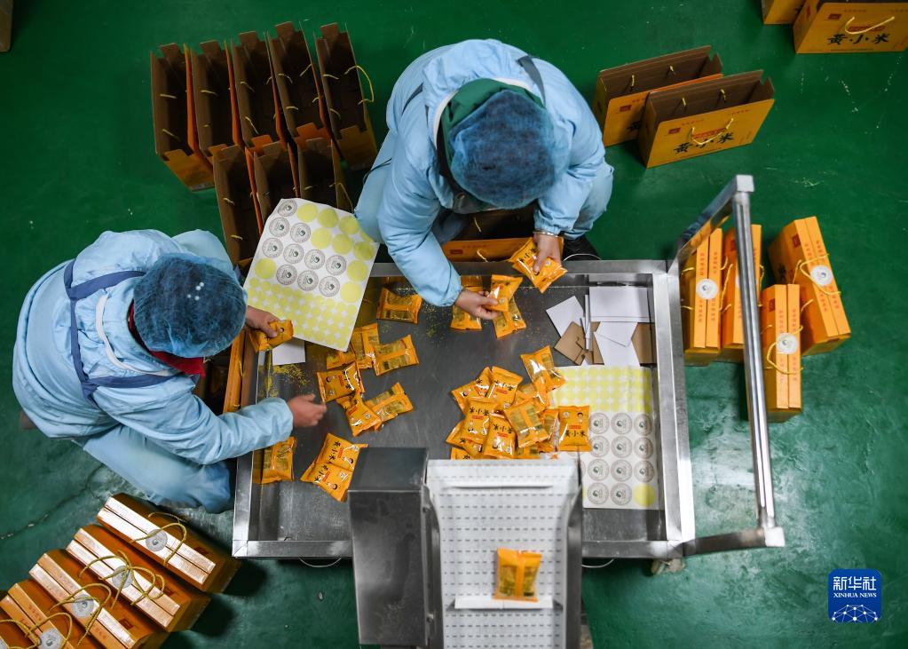 1月16日,陜西延安安塞區一家食品廠(chǎng)的工人在包裝小米。