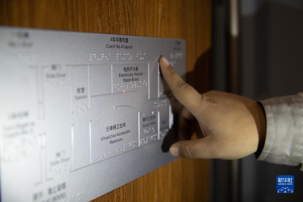 1月16日,工作人員在CR400BF-GZ型復興號高寒智能動(dòng)車(chē)組專(zhuān)門(mén)設置的無(wú)障礙車(chē)廂內進(jìn)行作業(yè)。