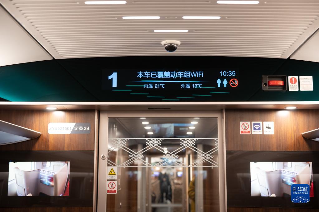 這是CR400BF-GZ型復興號高寒智能動(dòng)車(chē)組的車(chē)廂局部(1月16日攝)。