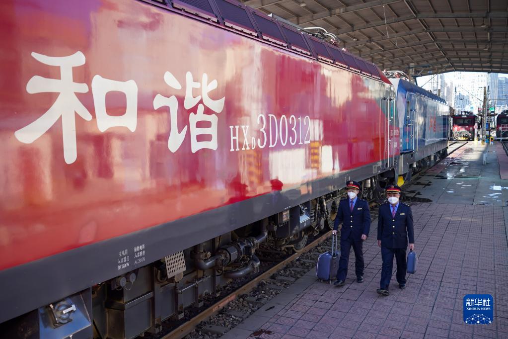 1月15日,丁建華(右)和徒弟姜庭瑞經(jīng)過(guò)即將駕駛的火車(chē)頭。