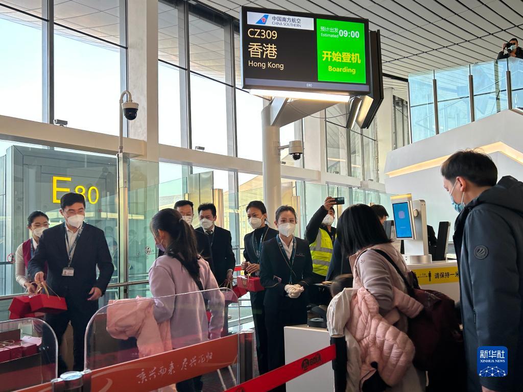 1月17日上午9時(shí)許,前往香港的CZ309航班搭乘100多名乘客騰空而起,中國“新國門(mén)”北京大興國際機場(chǎng)“暫?!苯甑膰H及地區客運航班“重啟”,國際及港澳臺地區客運航線(xiàn)正式恢復。