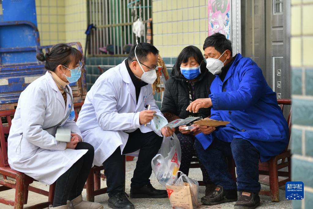 1月17日,在長(cháng)沙市望城區喬口鎮盤(pán)龍嶺村,醫護人員為老年人講解中醫藥防治藥方。