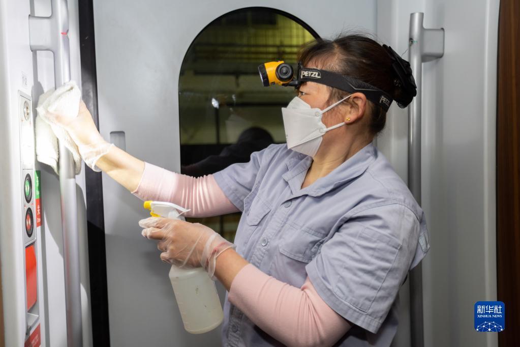 春運期間,上海華鐵旅客服務(wù)有限公司工作人員對入庫終到上海動(dòng)車(chē)段虹橋動(dòng)車(chē)運用所的動(dòng)車(chē)組列車(chē)開(kāi)展消毒清潔作業(yè),守護平安健康春運。