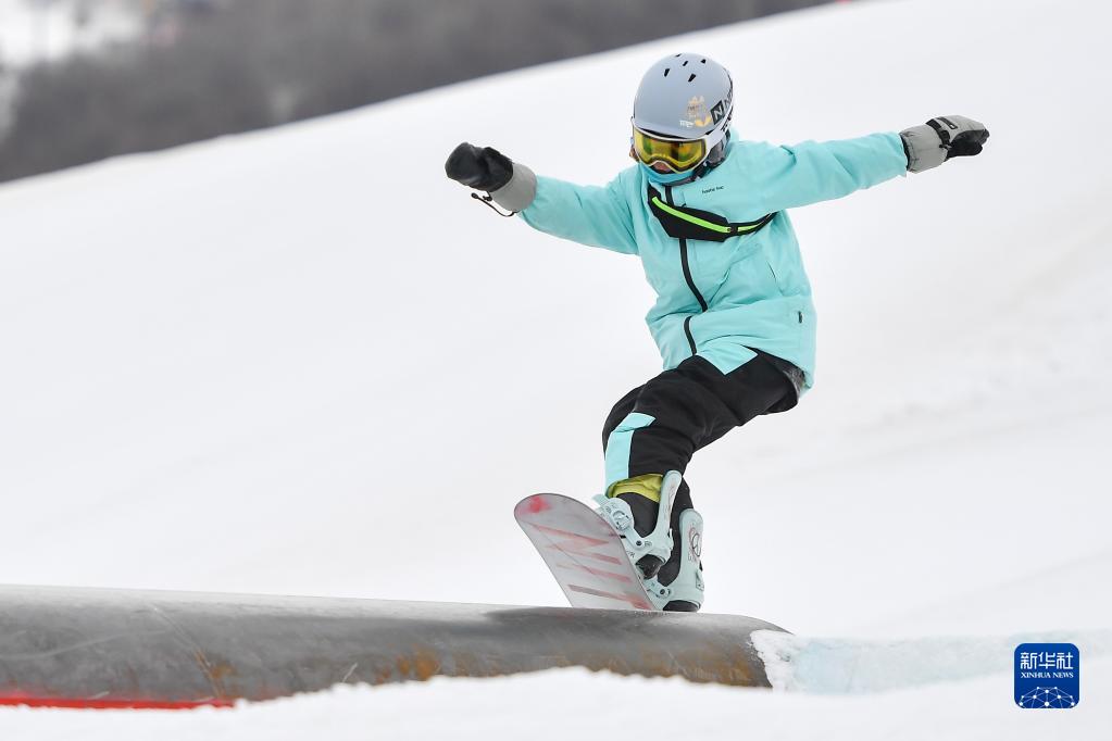 都軒銘在吉林省吉林市萬(wàn)科松花湖度假區V-PARK地形公園挑戰場(chǎng)地道具(2023年1月14日攝)。