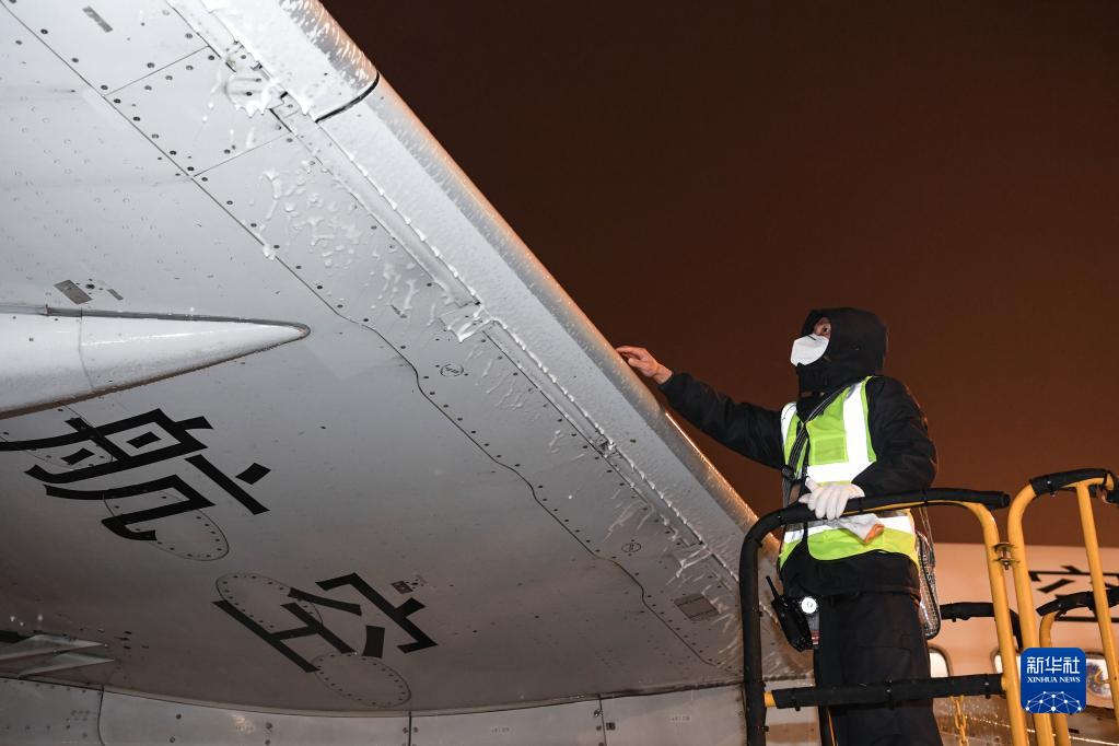 新華全媒+·新春走基層丨嚴寒下的航班守護者——走近深夜里的飛機“除冰師”