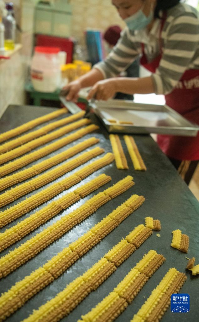 1月18日,在海南省瓊海市彬村山華僑經(jīng)濟區,村民龐曉英在制作特色年糕。
