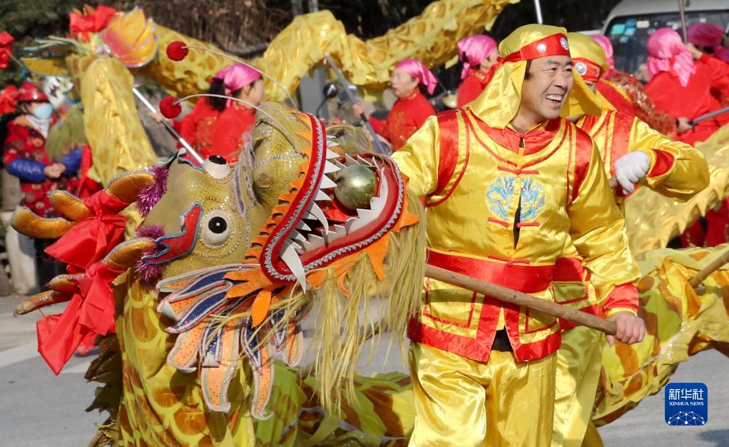 1月19日,浙江省湖州市德清縣莫干山鎮的村民在表演舞龍。