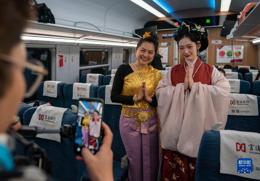 當日,奔馳在中老鐵路上的C272次列車(chē)車(chē)廂內,一場(chǎng)以“中老一家親,祥和中國年”為主題的列車(chē)春晚精彩上演。
