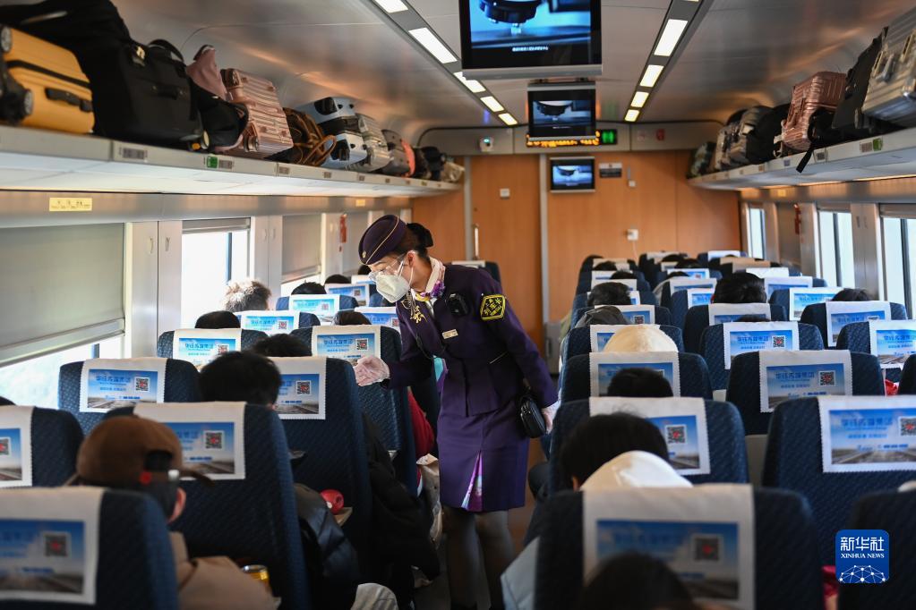 臨近除夕,從浙江開(kāi)往全國各地的列車(chē)迎來(lái)返鄉客流高峰。其中,從杭州東站發(fā)往重慶北站的D2246/D2247次動(dòng)車(chē)組列車(chē)全程1617公里,自東向西經(jīng)停浙江、江蘇、安徽、湖北、重慶等地21個(gè)車(chē)站,運行時(shí)間約11小時(shí)36分鐘。列車(chē)一路疾馳,在冬日的陽(yáng)光下跨過(guò)江河、平原,穿行于橋梁、隧道,陪伴旅客的返鄉路。